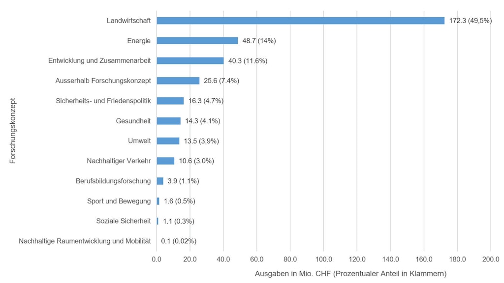 Im Jahr 2024 hat der Bund rund 348.3 Millionen Schweizer Franken für die Ressortforschung aufgewendet.